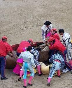 Los Monos Sabios, son considerados como auxiliares de los picadores. Son los únicos , salvo los toreros, que pisan reglamentariamente la arena del ruedo durante la lidia del toro.